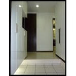 白を基調とした玄関ホールで、清潔感を演出致しました。玄関収納下に間接照明を設置し、夜でも足元が見えやすいように致しました。