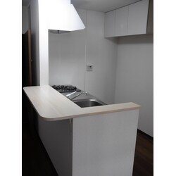 1LDKのマンションの一室を価格を抑えて水回りすべてとクロスの張り替えを行いました。収納棚やキッチンカウンターなどにより収納も増えデザインも一新しました。