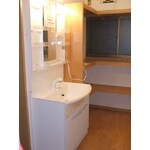 収納が少なかったので、棚や洗面化粧台を設置しました。