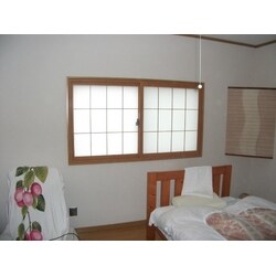 カーテンをつけないとのことでしたので、代わりに和紙調のガラスの入った後付けサッシを設置しました。