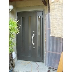 玄関ドアリフォーム完成!(^u^) お客様が来店するのにはちょっと暗くて汚い玄関でした。歪みも進んでいて”見た目”と”すきま風”に悩まされていたそうです。(奥様より。) 新しい玄関ドアを入れ替えるに際しては、玄関枠を組み直し、防水と左官、塗装を入れて傾きもなくなりました。今のドアは2重ロック等、防犯対策用にいろいろ考えて造られていますので安心ですね! ※状況によってはカバー工法での施工もありますが、本来は入れ替えと補修をする方が防水面では良いですよ!