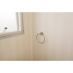 シックなカラーのアクセントパネルで落ち着いた印象のバスルーム