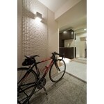 ブラケットライトが優しく照らす飾り棚が印象的なエントランス