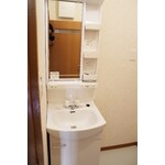 以前と同じ収納力を確保しながらシックな洗面室になりました。