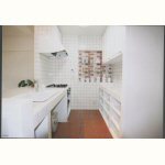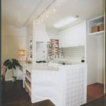 オリジナルの建材に白を基調にした内装を施しました。収納スペースをあらゆるところに設けました。