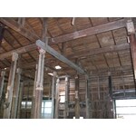 約30坪で6SLDKという小さなお部屋が並ぶ間取りを、開放的にしたい、というお客様のご要望から、ダイニングとの間仕切り壁を取り払い、キッチンとダイニングと居間を一つにしました。天井板は取払い、梁を出しました。床はタイルにすれば、湿気の心配もなく断熱材も入れられます。お客様からも、定期訪問後「いいね」と言って頂いています。