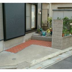 もともと、土間コンクリートだったので、広げた部分だけにレンガを敷き詰めました。