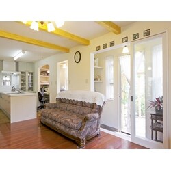 ミニ菜園をご夫婦で楽しまれているため庭へ自由に行き来でき作業服の着衣・長靴の履き替え・小道具などの収納と利便性を高める目的でインナーテラスを増築設計。 キッチンはご夫婦で立たれることが多いため、元々のL型をI型フラット対面にしてカウンターの幅も80cmにすることで安全で作業性を高めることができました。キッチン前にはお庭を眺めながら裁縫ができるスペースを増築し木漏れ日から降り注ぐ光、風、季節ごとに変わるお庭の景色を楽しめます。 今回のリフォームは4~5年かけてじっくりとご計画されたので、これからのライフスタイルを満喫できる価値のあるものになりました。