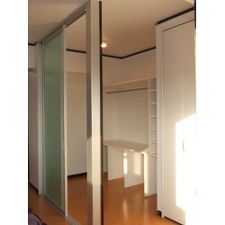 リビングダイニング、和室、子ども部屋、玄関、廊下 の内装(フローリング・壁・天井)のリフォームを行いました。 マンションのベランダに面した6畳2間の和室は、間仕切り壁を撤去しリビングと繋げて大空間とし、明るく広々としたリビングになりました。 また、和室収納のあった場所に新たにウォークインクローゼットを備え、収納力もアップしました。