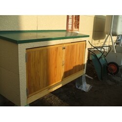 破損した既設建具は外壁材を用いており、建具自体重い仕上がりでした。新規製作した建具は木材を用いて、軽く開き易い建具としました。