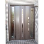 建築当時のまま長年ご使用されていたアルミ製の引き違い戸を、モダンな雰囲気の開きドアにリニューアルさせていただきました。既にリフォームを済まされています室内のイメージを損なわないデザイン選びをお客さまと共に行いました。