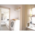 浴室が狭く、洗濯機と浴室が離れていて使いにくいというお悩みがありました。お子様の帰宅時間が遅いので、工事の期間も毎日シャワーを使いたいとご要望がありました。 増築によりユーティリティをつくり、既存の浴室をそのまま残したまま新たに浴室を増築。新しい浴室を使用可能にしてから、既存浴室を解体し、新たにユーティリティとして洗濯スペースとしました。 リフォーム後はひろびろとした空間を確保することができ、家事もはかどるようになりました。給湯器はエコジョーズ。環境にも配慮しました。