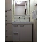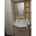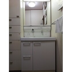 既存の洗面化粧台が古くなったので新しくしたいとのご希望により、使いやすくデザインもすっきりとした洗面化粧台にしました。