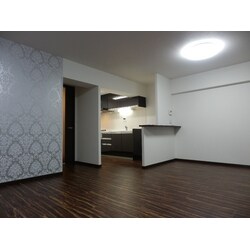 (旧日神住宅サポート株式会社での事例です。)マンションのスケルトンリフォームを施工しました。リビングや洋室・クローゼット内にアクセントクロスを使用し、一味違った内装にしました。