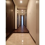 アクセントタイルで高級感のある廊下と玄関空間