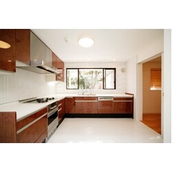 お客様が多くパーティの機会も多いというご一家です。 いらした方にテキパキとお料理をお出しし、素敵な空間で楽しんでいただきたいということで、極力生活感をなくして計画しました。