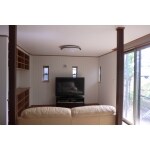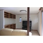 正面に飾り窓を入れ、左壁面には作り付けの収納を設けました。