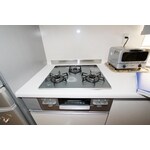 | その他採用機器・設備 | クリナップ:ラクエラ I型(間口:3000)/ステンレスワークトップ・3つ口ガラストップコンロ・サイレントスライド収納・フラットスリムレンジフード・電動昇降吊戸棚(除菌・乾燥・小物収納・食乾付き)・浄水器付きシングルレバー混合水栓 |