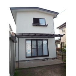 外壁を窯業系サイディングという外壁材に取り換えました。 物干し場も新しく作り、テラス屋根は窓枠と統一性のあるデザインにしました。