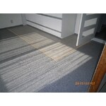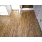 ベニヤを捨て張りした上、カーペットで仕上げました。また、キッチン前は清掃がしやすいよう塩ビタイルで仕上げました。