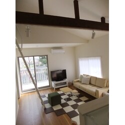 2世帯住宅の子世帯部分(2階)のリフォームでした。 共用だった玄関を2つにして、完全分離型に変えました。 間取りを大きく変更し、リビングは天井を上げ、バルコニーを設置。 限られたスペースを開放し広々と感じる仕上がりになりました。 ロフトスペースは足りない収納を補い、子ども達の遊び場にもなりました。