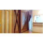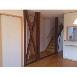構造体の柱と筋違は残し、木目調のクロスで仕上げました。