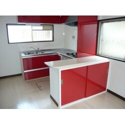 もともと写真奥の窓側に昔ながらのキッチンがありました。壁から壁までキッチンだったので、冷蔵庫を置くスペースがありませんでした・・・ そこで冷蔵庫スペースを確保する為、L字型のキッチンに♪さらにカウンターを取付け下部に食器棚をつくりました。床も張り替えて、スペース全体が明るくなりました♪