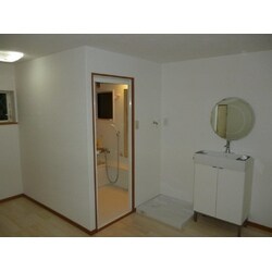 在来の浴室をシステムバスに入替、洗面スペースをフリースペースとして広くとりました。洗面台やアメリカンスイッチはお客様持込の物を取付いたしました。