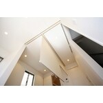 吹き抜けとトップライトで明るさ・空間の広がりを確保したLDK