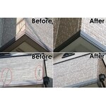 サイディングのコーキングが剥がれてしまっている箇所があったので、しっかりと打ち直しを行っています。また、意匠性の高いサイディングでしたので、デザインを損なってしまう塗装ではなく、クリアーのコーティングを塗布しています。