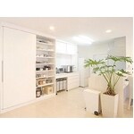 お客様ご夫婦の一番の希望は、明るさと収納力でした。LDK に家族みんなが集い、快適に過ごせる収納計画のお手伝いをさせていただきました。まずは、お客様がお持ちの物をリストアップするところから収納計画を始めました。特にリビングには「物」がたくさんあふれているのに収納が不足しているケースが多く見られます。「物」は使う場所に無いとストレスがたまります。収納計画と共に、使う素材についても何度もお客様と確認することで、色や質感ともに一番納得のできる素材を選ぶことでより快適な空間に仕上がりました。