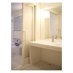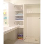 出来上がった時はとてもきれいで感動しました。以前より大きな鏡が出来て、収納も増え使いやすくなりました。お風呂は2枚引戸にしたのでゆとりを持って出入りでき、とても満足しています。