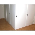 引き戸をL字形に配置し、間仕切りとして使えるようにしています。広いLDKと独立した洋室の両立を果たしています。