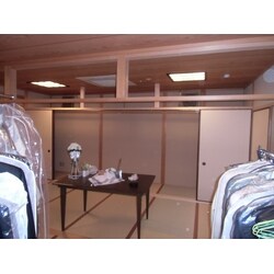 ウェディング店舗2階の和室衣装ルームに新たにドレスを吊るための押入れ収納を設けて頂きたいとの要望から、新たに敷居と、鴨居を取り付け、既存の襖をはめ込みました。 間口が約6mあり、腕利きの弊社大工さんに桧の無地材を丁寧に加工してもらい取り付けしました。 約6mある材料ですので、部屋内から材料を搬入することが出来ず、外壁に面する窓から3人がかりで材料を搬入しました。