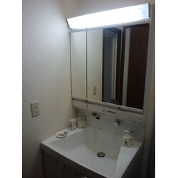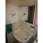 古くなった洗面化粧台を取替て、壁紙、クッションフロアーを張替ました。