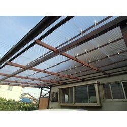 ガレージ屋根の波板が経年劣化に伴い見栄えも悪くなってきたので張り替えて欲しいとの依頼を受けポリカーボネート波板に張替しました。