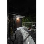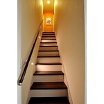 近くに住むご家族が集まる事も多く、玄関とリビング部分のスペース確保を優先しました。2階に上がって洗濯物を干すのが嫌という奥様の為に、階段下に洗濯機を設置し、廊下の奥に屋根付きのデッキスペースを造る事で家事動線を楽にしました。外部のアプローチを曲線で描き、夜にいらっしやるお客様を光の通路でやさしく迎えいれます。
