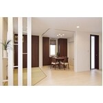 来客動線が重複しないように間取りを変更しました。取れない柱はデザイン処理し、水廻りの動線も各部屋毎に完結でき、生活感がでない暮らしが実現しました。
