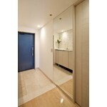 弊社で工事をさせていただいたお客様からのご紹介がきっかけでご提案をさせていただきました。タイルとミラーの組み合わせで壁面を飾られたいというご要望からプランを開始し、お打合せを重ねることで造作家具までご依頼を頂戴致しました。シンプルさと明るいホワイトのカラーを基調にしたインテリアになるように商品を選定させていただきました。工事期間中はご心労もあったかと思いますが、ありがとうございました。