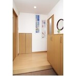 ○1階の快適な利用に繋げるため、階段を緩やかにし(1段増で踊り場2段に)、階段ホールの窓は特に歩行者の視線を外した高さに設定して1階LDへのあかり取り効果を高めた。 ○窓の形状や配置プライバシーや周辺景観等に合せ、またハイサイドで空を多く見せ明るさや開放感を高めて全体でメリハリをつけた。 ○一期一家(長期優良住宅で次世代省エネ基準クリア)・LED照明使用・電化エコキュート(暖給)。