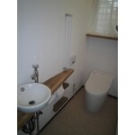 当社提案の自然素材を使用したトイレ空間を気に入って頂きありがとうございます。 一つ一つ素材を吟味し、古材を利用したカウンター、手洗いボウル、水栓、壁のスイス漆喰、床の柄、タンクレストイレ 全て拘りの組み合わせです。