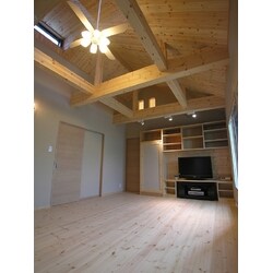山小屋」のような空間をご希望だったご主人。 居住空間が2階という事もあり、屋根裏部屋をなくし、天井の高い解放感ある空間に。 また床・壁は無垢材、壁には珪藻土などとことん自然素材にもこだわりました。 建具は基本的に引き戸にし、また今まで段差のあった水周りも全てフラットにし、これからも安心して暮らせる住まいへとなりました。