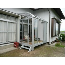 洗濯物を干すときに、毎回掃き出しの窓から外に出ているとのことでしたので、将来のことも考え楽に干して頂けるようサンルームを設置することになりました。 掃き出しの窓に欄間があり、そのすぐ上に庇があったので、その部分を加工してぴったりと設置しました。