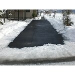 この融雪システムは、テフロンヒーターをアスファルトの下に敷いて雪を融かすシステムです。温水システムと違い、施工後の維持費・メンテナンス費用が不要です。また、熱効率が抜群に高く、極めて少ないエネルギーで融雪しますので、気になる電機料金も安く済みます。画像は実際にシステムを作動したときのものです。これからは、雪掻きの手間が省けて安心です。