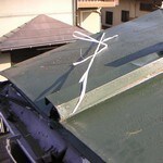 お手入れはされていたようですが、 かなり築年数が経過している為、全体的に傷んでおり、 一部剥がれかかって紐で止めてある所や、 雨樋も一部破損していました。 既存を剥がし、下地も補修し、 軽量で錆に強いガルバリウム鋼板に葺き替えました。