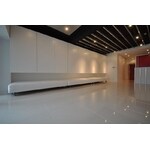 「Alluminio - アルミニオ -」はイタリア語で「アルミニウム」のこと。 アルミ部材の金属感を活かして、パキッとしたワンルームに仕上げた。 居住性へのこだわりは、外気温を遮断する二重サッシ、ルームドライヤーの設置や 600角タイルの下に配した床暖房によって、ソリッドな空間を演出しながら快適さを失わないように配慮。 また、L40相当の防音床下地材を用いる事で、タイル仕上げでありながら足音などの下階へ向けた防音対策も施している。
