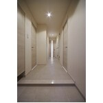 ブラケットライトが優しく照らす飾り棚が印象的なエントランス