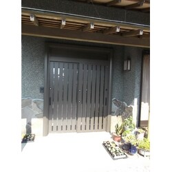 もともとガラス面積が大きく玄関内部が外部から見えやすく防犯性も不安があったところを防犯性を向上させお家のイメージにマッチした玄関引き戸に変わりました。