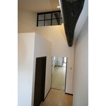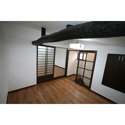 既存の建具を利用し、天井を高くするため梁を見せるような構造にしました。