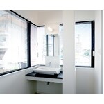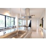 何度も綿密な打ち合わせを重ね施主様と共に造り上げたKS邸。 元々オフィスであった建物を住宅へリノベーション。施主様ご希望のステンレス素材のキッチンを軸にデザイン案を展開していくことで、 ベースカラーはホワイト、ポイントカラーはブラックとしました。生活の主体であるリビングダイニングは既設の大きな窓を活かしルーミーで開放的なデザインに。 対照的に寝室階はホテルライクにオリジナル間接照明を使用し、壁紙はダークブルーとブラックで落ち着いた空間へ。